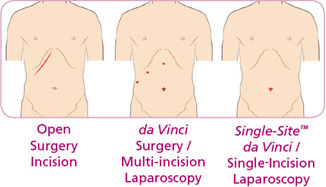 • da Vinci® Single-Site™ Surgery: Another minimally invasive surgical option is da Vinci® Single-Site Surgery. With the da Vinci® Single Site Surgical System, surgeons make one small incision in your belly button to remove your gallbladder similar to single incision laparoscopy. The da Vinci® System features a magnified 3D high-definition vision system. As a result, da Vinci® enables your doctor to operate with enhanced vision and precision.
