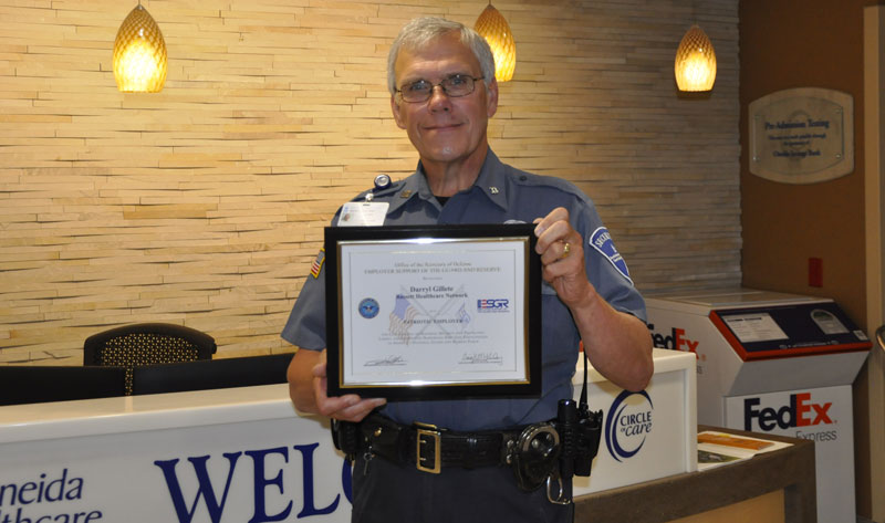 The New York National Guard recently honored Bassett Healthcare Network’s security supervisor at Oneida Healthcare for “contributing to national security and protecting liberty and freedom by supporting employee participation in America’s National Guard and Reserve Force.”